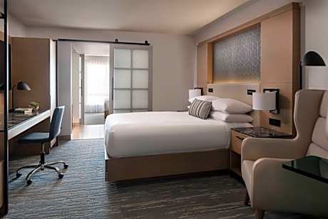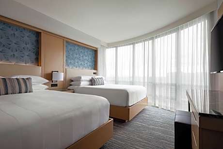 It features an outdoor pool and hot tub with suites that provide a 37-inch flat-screen cable TV. Featuring flat-screen cable TVs, the guest suites at Vancouver Airport Marriott Hotel are furnished with a refrigerator and coffee facilities. These spacious suites also offers a separate living area. Guests can enjoy on-site dining options including 75 West Coast Grill, serving breakfast, lunch, and dinner, or Lotus Land Lounge for drinks and snacks. A business center and a gym are available to every guest at the Vancouver Airport Marriott. Foreign currency exchange and laundry facilities are on site. The Richmond Olympic Oval is 0.9 mi from the hotel. Richmond Center Shopping Mall is 591 feet from the Vancouver Airport Marriott Hotel.