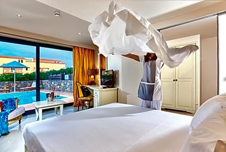 Boasting a 1500 m2 spa center, outdoor swimming pool and 6 bars, Sentido Vasia Resort & Spa is peacefully set in the picturesque fishing village of Sissi. All stylish suites and room at Sentido Vasia Resort & Spa open to a furnished veranda or balcony. Some suites boast a private swimming pool. Each comes with a private bathroom, while some are also fitted with hydromassage facilities. Sumptuous buffet breakfast can be enjoyed every morning. Guests may taste Greek, Mediterranean, Italian and gourmet cuisine at the 4 on-site restaurants. Guests may pamper themselves at the spa center, while more energetic ones can play tennis or football at the on-site sports facilities. The scenic village of Agios Nikolaos is 16 mi, while Heraklion is 28 mi away. Heraklion International Airport is a 30-minute drive away.