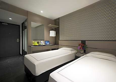 Featuring brown hues décor, this triple room comes with 1 queen-sized bed and 1 single bed. Pocketed spring mattresses and comfortable bed linens are provided.