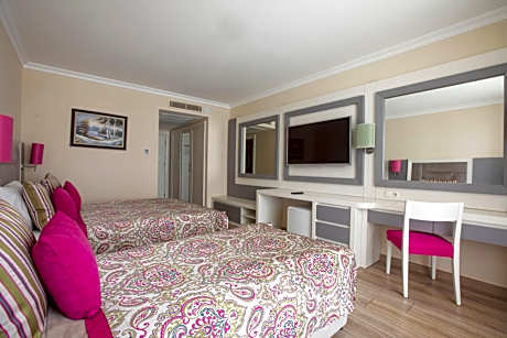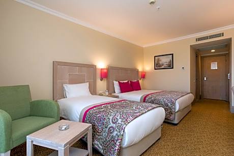 Located by its own private beach in Belek, this luxurious hotel features an indoor pool with 3 water-slides, a spa and free WiFi. The bright, spacious guestrooms offer satellite TV and air conditioning. Each room is fitted with contemporary furnishings and modern bathrooms with bathrobe and slippers. Some have seating areas with sofas and rich fabrics. In the warm season, Orange County Belek opens its large, outdoor pool with water slides. At the spa, guests can relax with a full body massage treatment, in the hot tub or in the sauna. A wooden dock is available on the beach. Orange County Belek features a range of sports including beach volleyball and tennis. For younger ones, there is a children’s pool and a playground. The hotel also has mini club for 4-12 ages. Orange County Belek offers a number of dining options restaurant. Snacks and refreshing drinks are offered at the poolside bar. Children between the ages of 0-12 are prohibited from using the Fitness Center. The hotel is located just 1640 ft from the center of Bogazkent-Serik. Free parking is available on site.