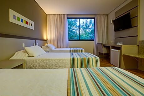 The hotel is strategically located in the centre of the city of Foz do Iguazu, only 22 km from the waterfalls. The artisan's centre is just around 1 minute's walk away. The beach at Tres Lagoas is around 12 km away. The 151-room hotel, which was renovated in 2009, has a privileged location and offers suites completely different from others in the region. Guests can also enjoy international cuisine in the café, bar and restaurant, room service and various options for relaxation and enjoyment, including an auditorium and games room. Other facilities at this air-conditioned establishment include a lobby, hotel safe, cloakroom, lift access, conference facilities, a car park and garage. The hotel offers luxury apartments with private bathroom. All rooms are equipped with an LCD TV with satellite/cable channels, digital air conditioning (individually regulated), a fridge, wireless Internet access and an individual safe-deposit box. A minibar, direct dial telephone, double bed and hairdryer also feature as standard. The hotel has 2 swimming pools, including an outdoor pool and a children's swimming area. There is a poolside snack bar, sun loungers and parasols. Guests can make use of the gym and sauna, or play table tennis and pool/snooker. A breakfast is served daily. Lunch and dinner are offered à la carte.