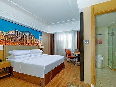 Vienna Hotel Tianjin Guizhou Road Branch offers top-notch services and amenities, ensuring guests experience utmost comfort.Share your photos and respond to emails at your convenience, thanks to the free Wi-Fi internet access offered by hotel.Taxi offerings at the hotel enhance the ease of discovering Tianjin. Visitors can take advantage of complimentary parking directly at the hotel. Reception services such as concierge service, express check-in or check-out, luggage storage and safety deposit boxes are available to accommodate your requirements.Should you desire access to the top entertainment in the city, assistance can be provided by the hotel's tours.Traveling with minimal baggage is achievable at Vienna Hotel Tianjin Guizhou Road Branch, as the hotel's dry cleaning service and laundry service ensures your garments stay fresh. Room amenities like 24-hour room service, room service and daily housekeeping contribute to making a perfect selection for your stay.The hotel maintains a completely smoke-free zone, providing a breathable atmosphere. Smoking is limited to specified smoking zones. Embark on your holiday experience in the most ideal manner. Commence each morning of your visit with an on-site breakfast. Experience the delight of a fresh morning by savoring excellent coffee at the cafe situated within hotel. Should you prefer not to venture out for a meal, the enticing culinary choices at hotel are always available for your satisfaction.Throughout the day and evening, grab a bite to eat from hotel's self-service vending machines whenever you please. Throughout the day, engage in the entertaining activities available at Vienna Hotel Tianjin Guizhou Road Branch. Unwind after your day by exploring the sauna and find warmth and relaxation. For individuals who don't want to skip their exercise routine, visiting the hotel fitness center ensures you maintain your vitality and wellness.