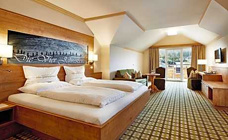 Surrounded by the Karwendel and Rofan Mountains and combining Tyrolean hospitality with Italian passion, Wellnesshotel & Residenz Vier Jahreszeiten is located in Maurach at the southern shore of Lake Achen. The spa area includes an indoor pool with panoramic mountain views. Decorated according to a season of the year, each room's design is matching spring, summer, autumn or winter. A TV and a bathroom with hairdryer are further amenities of the rooms. The spa area consists of a hot tub, an aromatic oil steam bath, a sauna with panoramic mountain views and a Bio sauna, infrared cabins, relaxation rooms with waterbeds and loungers, and a gym. Massages and beauty treatments can be requested at a surcharge, while a tea and wellness-juices corner is offered for free. Vier Jahreszeiten Wellnessresort Achensee offers a varied sports and entertainment program, as well as its own children's playroom. Please consider that some wellness areas are only for guest from 16 years age: infinity pool with sun terrace, panorama sauna and sky event sauna with mountainview, aromaoil steam bath, solegrotte, stonesauna, infrared-lounge, generous rest & relaxation room with waterbeds, fitness room, virtual training, library tea corner The restaurant serves creative cuisine with seasonal specialties and a wide range of fine wines. Half-board consists of a breakfast buffet with a selection of regional products, an afternoon snack from 1:00 p.m. to 3:00 p.m. and a 6-course dinner (choice of the main-dishes: one vegetarian, one meat and one fish option) with daily starters, salads, cheese and ice from the buffet. In addition to that there are weekly culinary theme evenings like "All around the world" and we grant you an unforgettable stay due to different live-music artists. Guests will be received with a welcome drink (minimum stay of 3 nights). The center of Maurach and a beach are only a 10-minute walk away. There is a bus stop right in front of the hotel, and cross-county ski runs can be accessed right at the doorstep. The ski areas can be reached on the regional busses, which are free of charge for hotel guests.