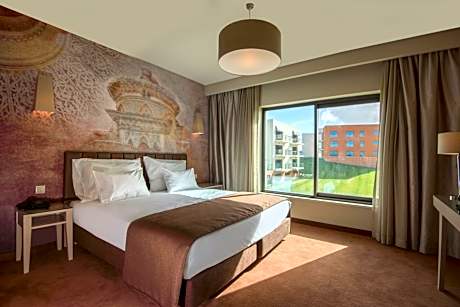 Located in Várzea de Sintra, just a few minutes’ drive from Sintra’s town center, the 5-star Vila Galé Sintra features an innovative health concept, designed for families and those into a strong wellness experience. Rooms and suites at Vila Galé Sintra are carefully decorated and provide maximum comfort. Each accommodations is equipped with air conditioning, mini-bar, safety deposit box, flat-screen cable TV and free WiFi. The bathroom features a walk-in shower, hairdryer and free toiletries. Both restaurants of the Vila Galé Sintra offer either an à la carte light gourmet or low-calorie buffet options together with far-reaching views of the Várzea de Sintra and the Pena Palace. In addition, healthcare services are available providing options for a healthy and balanced diet. In addition, the Spa Satsanga includes a panoramic heated indoor pool, a sauna, a hot tub, a Turkish bath, a gym, a fitness area and a variety of therapies and rituals. Other facilities include a beauty salon, laundry services, parking garage, adult and children outdoor swimming pools, a library, a children’s carousel, NEP Kids Club with trampoline, 24-hour reception, 6 meeting rooms and a spacious hall for events. Vila Galé Sintra is 21 mi from Humberto Delgado International Airport and conveniently within a 25-minute drive from beaches like Praia das Maçãs, Adraga and Azenhas do Mar. Landmarks like Quinta da Regaleira, Pena Palace and Moors Castle are within 6.2 mi. License Number(s): 7918/RNET