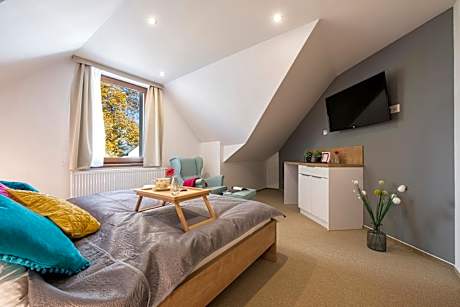 Featuring garden views, Villa Bellevue Wellness in Liptovský Mikuláš provides accommodations, a garden, a terrace, a bar, and a shared lounge. This guest house features free private parking and free shuttle service. All rooms have a flat-screen TV with satellite channels. At the guest house, all units have a wardrobe. Rooms have a kettle, a private bathroom, and free Wifi, while some rooms also boast a balcony and some have mountain views. At the guest house, units have bed linen and towels. A mini-market is available at the guest house. For guests with children, the guest house offers indoor and outdoor play areas. Skiing and cycling can be enjoyed nearby, while a bicycle rental service and ski storage space are also available on-site. Demanovská Ice Cave is 3.5 miles from Villa Bellevue Wellness, while Aquapark Tatralandia is 5 miles from the property. Poprad-Tatry Airport is 34 miles away.
