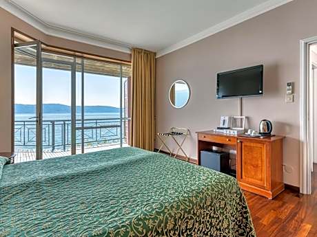 Set on Lake Garda’s shores, Villa Cappellina offers rooms with a lake-view balcony and free WiFi. The hotel features a panoramic swimming pool, hot tub and sun terrace, and is 0.6 mi from Golf Club Bogliaco. The rooms include an private bathroom with hairdryer, a flat-screen TV with Sky channels, and a mini-bar. The breakfast buffet is served on a common balcony overlooking the lake. Villa Cappellina is 5 minutes’ drive from the center of Toscolano-Maderno, where ferries depart for Torri del Benaco across Lake Garda. It offers free parking on site. Surrounded by olive groves, the hotel offers direct lake access and a private beach. Its swimming pool overlooks the surrounding landscape.