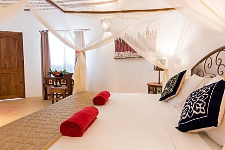 Located along its own private sandy beach in Matemwe, Villa Kiva Boutique Hotel features large gardens and an outdoor pool. It is 28 mi from Stone Town, and offers a restaurant and free Wi-Fi. Offering a private veranda or a balcony, each guestroom at Villa Kiva is elegantly decorated with exposed wooden beams and ethnic details. All rooms have an private bathroom with shower and bidet. Some suites have a seating area with a TV. A buffet breakfast is served every morning at the Villa Kiva Boutique Hotel. Its restaurant offers a menu based on the rich and variegated Zanzibar tradition, fresh seafood dishes and European specialties. The bar offers the perfect spot to sip a cocktail or enjoy a selection of beverages. The main building has also a lounge area and a TV room, and the staff can arrange a variety of massages. Zanzibar Airport is 33 mi away, while the Stone Town ferry pier in is 29 mi away.