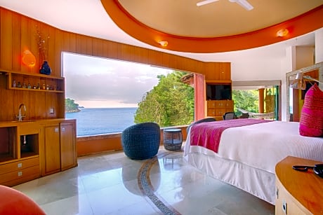 The pool with a view and hot tub are the special features of this suite. This spacious suite includes 1 living room, 1 separate bedroom and 1 bathroom with a bath and free toiletries. The air-conditioned suite offers a flat-screen TV with cable channels, a private entrance, soundproof walls, a mini-bar as well as sea views. The unit has 1 bed.