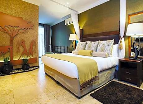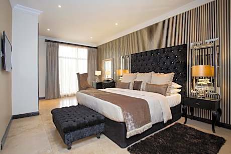 Measuring 80 square yards, this Presidential Suite has a separate sitting area with a satellite TV. It also comes with a dining area and kitchenette. Guests are welcome to use the tea and coffee facilities, mini-bar and Espresso machine available in the unit. The suite is complete with a walk in shower and Hot tub.