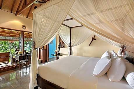 A 30-minute drive from Gitgit Waterfall, Villa Patria provides a peaceful retreat set amid a natural landscape. It features Balinese style accommodations and an infinity swimming pool. Free Wi-Fi access and free scheduled shuttle services drop off and pick up to Lovina area are available. Fitted with air conditioning, the huts and villas include a flat-screen cable TV and a DVD player. The sweeping views of the surrounding greenery can be enjoyed from the private terraces. Private bathrooms are equipped with shower facilities and free toiletries. Villa Patria is within 3.7 mi from Lovina Beach, from which guests can hop on a boat and see playful dolphins in the early mornings. Buddhist Temple and Hot Springs in Banjar are 45 minutes' drive away. Ngurah Rai International Airport is a 3-hour drive from the villa, which also offers airport pick-up services at a charge. Other services include laundry, ironing and bicycle rental. Staff at the tour desk can assist guests with arranging various outdoor activities, such as diving, snorkeling and horse riding. Guests who drive enjoy free parking privileges. Indonesian and Western cuisines are served by the villa’s kitchen, which also offers room service. A private chef can be requested at an additional charge.