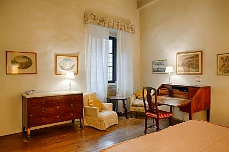 Villa Rucellai is a charming bed and breakfast located in Prato, nestled in the tranquility of the Tuscan countryside, just 2.5 mi from the city center. This historic villa, still owned and inhabited by the Rucellai-Piqué family for more than two centuries, offers a cozy and familiar atmosphere, ideal for a relaxing break or as a starting point for exploring Tuscany. The property has several rooms, each unique in size and decor, all with private bathrooms. A generous buffet breakfast is provided daily in this family-run historic villa, and guests can enjoy several restaurants such as "EleBene" Home Restaurant that is here in the villa or many nearby, serving Tuscan specialties and pizza. Guests can enjoy an outdoor swimming pool for seasonal use, ideal for relaxing moments surrounded by greenery. The villa is surrounded by olive groves and vineyards and offers a serene and evocative environment.
