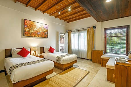 Experience an abundance of unparalleled facilities and features at Villa Semana Resort Ubud .Maintain seamless communication using the complimentary Wi-Fi at resort. Effortlessly arrange transportation to and from the airport using the resort's airport transfer services. Discovering Bali becomes even more accessible through the taxi, car hire and shuttle amenities provided at the resort.For visitors traveling by automobile, complimentary parking is available. During your stay at this fantastic resort, the attentive front desk personnel can provide you with a range of amenities such as concierge service, express check-in or check-out, luggage storage and safety deposit boxes. In search of city's top entertainment, seek assistance at the resort's ticket service and tours for reservations. At the resort, utilize the on-site dry cleaning service and laundry service to maintain your beloved travel attire fresh, allowing you to bring fewer clothes. Craving relaxation? Make the most of your stay at the Villa Semana Resort Ubud with convenient amenities like 24-hour room service, room service and daily housekeeping at your disposal. For visitors wishing to smoke, designated smoking zones can be found.At Villa Semana Resort Ubud , every guestroom is provided with convenient amenities and fittings to ensure a comfortable stay. Enhance your experience at resort with the knowledge that certain rooms are equipped with linen service, blackout curtains and air conditioning for your convenience. At Villa Semana Resort Ubud , each visit offers an array of intriguing room configurations, featuring accommodations with separate living room and balcony or terrace, ensuring a distinct experience every time. Certain rooms offer in-room amusement features such as the cable TV for your enjoyment.In select rooms within the resort, a refrigerator, bottled water, a coffee or tea maker, instant coffee, instant tea and mini bar is available to cater to your requirements when desired. It is worth noting that certain guest bathrooms feature a hair dryer, toiletries and bathrobes for your convenience. Begin your day carefree at Villa Semana Resort Ubud , as complimentary breakfast is offered for your convenience.Begin your day feeling refreshed and invigorated as you enjoy a delightful cup of quality coffee available at the cafe situated within the resort. At the resort, an assortment of easily accessible and delicious meal choices are available to satisfy your appetite whenever it strikes. At the resort, discerning guests can also enjoy on-site culinary facilities like BBQ facilities tailored to their preferences. During your stay at resort, an array of engaging activities and amenities guarantees a delightful experience. Conclude your holiday perfectly with a visit to massage and spa on your final days.Be sure to drop by the pool at resort at least once during your stay.Discover the fitness amenities at resort to maintain your health and strength during your getaway.