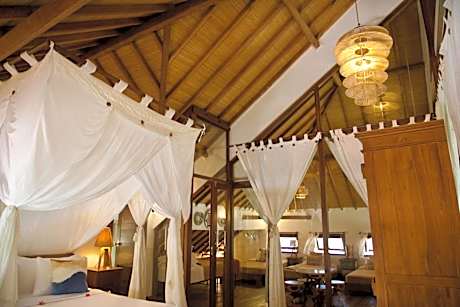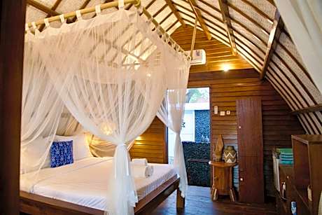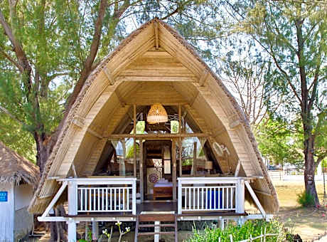Villa Sunset Beach is a beachfront property on the beautiful Gili Trawangan Island. It offers a tropical oasis amid lush gardens overlooking the sea. Guests can go snorkeling on the beach in front of the property or join a yoga session in the wooden studio. Free WiFi is accessible throughout the entire property. Steps away from the white sandy shores of Gili Trawangan Island, Villa Sunset Beach is a 15-minute bicycle ride from Gili Trawangan Market. The island itself is reachable by a 2.5-hour speed boat ride from Padang Bai Harbor in Bali. The stand-alone bungalows and villa are all fitted with a private terrace overlooking the beach and sunset. Cooled by air conditioning and a fan, they are well equipped with an electric kettle, safety deposit box and a large flat-screen satellite TV. Bath or shower facilities are available.