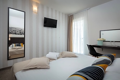 Offering beachfront accommodations in Vodice, Hotel Villas Aarausana & Antonina features an infinity pool with sun loungers. Guests can enjoy their drink at the on-site bar. Free WiFi is available and private parking at extra cost is provided on site. Each room is air conditioned and has a flat-screen satellite TV. Some rooms feature a seating area for your convenience. All rooms have a private bathroom equipped with a bath or shower. Extras include free toiletries and a hair dryer. The hotel serves a rich buffet breakfast every morning at the La Belle Vie Restaurant. Guests can sample a meal from the restaurants selection of international dishes while enjoying the sea view. The nearest bars and restaurants can be reached in 984 feet. ACI Marina Vodice is at the distance of 1640 feet and Hacienda night club is 1.9 mi away. Šibenik is 6.2 mi from Villas Aarausana & Antonina, while Trogir is 34 mi away. The nearest airport is Split Airport, 30 mi away. Shuttle service can be arranged for a fee and upon previous request.