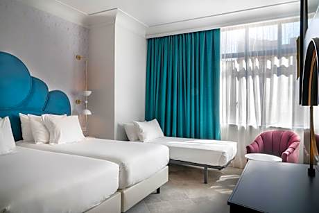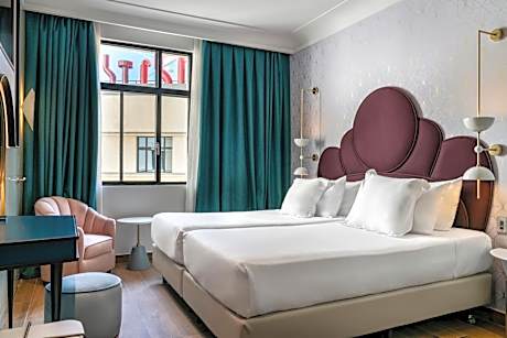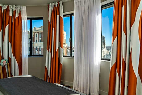 Vincci Capitol is set on Madrid’s Gran Via, a few yards from Callao Metro Station. This stylish hotel features a roof terrace with impressive city views and rooms with flat-screen TVs. The Capitol offers Art Deco-style design, and its soundproofed rooms are spacious and air conditioned. Each has a pillow menu, a mini-bar and a hairdryer. Free WiFi is available in all areas. A daily breakfast is served, including products for celiacs. The popular Puerta del Sol District with its many bars and restaurants is just 1640 feet from the hotel. Plaza Mayor can be reached in 10 minutes, by foot. Terrace open during the summer period. Availability subject to adverse weather conditions.