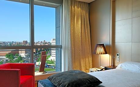 Strategically in Valladolid's commercial area, this hotel boasts eye-catching design and fantastic facilities including an outdoor swimming pool. Admire the Vincci's interiors that begin with the impressive foyer and lounge area. Here, find over-sized lamps, angular sofas and a great use of color and light. Rooms at the Vincci Frontaura have stylish modern décor and include air conditioning, satellite TV and a safe. Bathrooms feature a hairdryer and amenities. The spa is open during the weekend and features a gym, several small pools, a contrast shower, a sauna and Turkish baths. Guests can access the spa for a charge and all appointments must be booked in advance. The gym is open from Monday to Thursday, from 8 am to 10 pm. The hotel serves a daily breakfast. There is a section with products for guests with celiac disease. The hotel offers private on-site parking, subject to availability, for an additional charge. License Number(s): H/VA/240