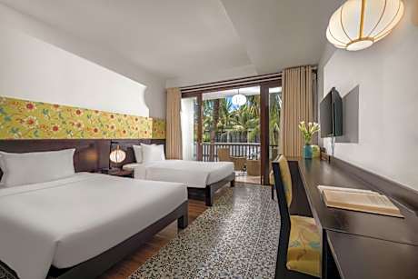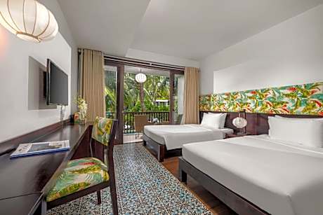 At Emerald Hoi An Riverside Resort, exceptional service and top-notch amenities create a memorable experience for guests.Complimentary internet access is available in the resort to ensure you stay connected during your visit.Arrange your trips to and from the airport using the resort's convenient transportation services booking.Amenities at taxi offered by Emerald Hoi An Riverside Resort simplify the organization of your excursions, tourist activities, and other adventures in Hoi An.Complimentary parking is available for guests.Continuously receive the support you require through front desk amenities such as concierge service, luggage storage and safety deposit boxes.At the resort, utilize the convenient laundry service to maintain your preferred travel attire fresh, allowing you to pack lighter. Craving relaxation? In-room amenities such as room service and daily housekeeping allow you to maximize your time spent inside the room. Due to health concerns, smoking is strictly prohibited within the entire premises of resort.For the health and well-being of all guests and staff, smoking is restricted exclusively to assigned zones.Accommodations come equipped with all the conveniences required for a restful night's slumber. A selection of rooms feature linen service, blackout curtains and air conditioning to ensure your comfort and convenience. A few accommodations at Emerald Hoi An Riverside Resort also include unique design elements like a balcony or terrace. A few chosen rooms are equipped with television and cable TV to ensure guest amusement. In certain rooms, the resort offers visitors access to a refrigerator, bottled water, a coffee or tea maker, instant coffee, instant tea and mini bar. Emerald Hoi An Riverside Resort offers a hair dryer, toiletries and bathrobes in the restrooms of specific accommodations. A delightful breakfast is the perfect way to begin your day, and at Emerald Hoi An Riverside Resort, you can always indulge in a scrumptious meal on-site. Allow your journey to be free from the pangs of hunger! On-site eateries offer delicious and accessible meal choices.At Emerald Hoi An Riverside Resort, guests can take pleasure in the delightful recreational amenities provided for their entertainment.Conclude your days in complete tranquility by visiting the spa situated precisely at the resort.At Emerald Hoi An Riverside Resort, a wide array of amenities guarantees a fulfilling experience throughout your visit. Make your holiday truly memorable by taking a rejuvenating plunge into the pool. At Emerald Hoi An Riverside Resort, the poolside bar provides an excellent incentive to enjoy extended hours in your swimwear. At the resort fitness center, you have the option to engage in your daily exercise routine or simply alleviate your jet lag by breaking a sweat.