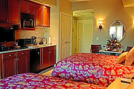 Near several Napa Valley wineries and recreational activities, this all-suite property in Napa, California offers an on-site spa, 2 outdoor swimming pools and 2 fitness centers. The suites at the Vino Bello boast furnished patios or balconies. Guests can prepare a meal in their fully equipped kitchenette or kitchen or take advantage of in-suite washers and dryers. Vino Bello Resort features a water playground for children and underground cave spa with state-of-the-art treatments. Guests can also enjoy fine dining at Siena Restaurant, which is located at the hotel next door. Downtown Napa is 10 minutes' drive away from the Vino Bello Resort.