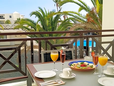 VitalClass Lanzarote Sports & Wellness resort is the ideal hotel**** for those looking for a cozy and relaxed stay. It has free sports and wellness facilities equipped with tennis and paddle courts, a semi-Olympic heated indoor pool, gym and spa. The varied different types of rooms provides our guests an immersion in the purest Canarian style with a touch of modernity. All rooms have a private terrace with pool or gardens views, flat screen TV, telephone, memory foam beds, iron, hair dryer and a kettle. We offer hot tub in some of our premium suites, for an additional cost. If you are interested, please, request your suite by calling or writing an email to the hotel front desk (service subject to availability). You will be able to enjoy in one of our 3 outdoor pools, while enjoying a snack or refreshing drink in our snack bar. We also have a pool for kids with slides and a games area. Our buffet service offers a varied selection of quality products and menus suitable for vegetarians, celiacs and designed for athletes who need a good portion of energy. The hotel is located in Costa Teguise, a quiet residential area just 900 meters from Bastián beach and the town centre, where there are many shops, bars and restaurants. You will find the largest golf course on the island within 2 km, the water park a few meters away and the airport just 14 km distance.