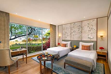 Great care is taken to ensure guests experience comfort through top-notch services and amenities.Remain linked during your visit by utilizing the complimentary internet access available. Prior to your check-in date, you can arrange airport transportation services, guaranteeing a seamless and efficient experience for both arrival and departure. Services offered by taxi and car hire at the resort ensure effortless exploration of New Delhi and NCR.The resort offers complimentary parking for guests who arrive with their own mode of transport. Effortlessly plan your daily activities and travel requirements with concierge service, express check-in or check-out, luggage storage and safety deposit boxes provided by the front desk services. Securing top-notch tickets and reserving prime dining spots become effortless through assistance from the resort's tours. For extended visits or whenever required, the dry cleaning service and laundry service ensures your preferred travel garments remain clean and accessible.During leisurely days and evenings, in-room amenities such as 24-hour room service, room service and daily housekeeping enable you to maximize your stay in the room. In limited designated zones, smoking is exclusively permitted. Each morning at Taj Surajkund Resort & Spa, Delhi NCR, a scrumptious, homemade breakfast kick-starts the day.Begin your holiday mornings right with your essential cup of coffee, offered daily at the cafe on-site.During your visit, indulge in a range of delightful culinary choices at resort to enhance your experience. Experience a fantastic evening effortlessly! Relish an entertaining night without venturing beyond the confines of the bar. Indulge in the numerous pursuits available at Taj Surajkund Resort & Spa, Delhi NCR. Treat and spoil yourself by stopping at massage, salon, steam room, spa and sauna for a memorable experience.Begin your holiday perfectly by taking a plunge into the swimming pool.Eliminate those holiday calories by stopping by resort and making use of their well-equipped exercise amenities.