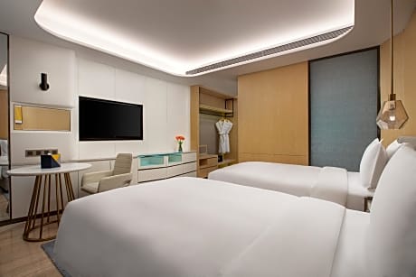 Voco Xian ETDZ By IHG offers top-notch services and amenities, ensuring guests experience utmost comfort. Share your photos and respond to emails at your convenience, thanks to the free Wi-Fi internet access offered by hotel.Should you require transportation to or from the airport, hotel is able to organize it prior to your arrival date. Taxi offerings at the hotel enhance the ease of discovering Xian. Visitors can take advantage of complimentary parking directly at the hotel. Reception services such as express check-in or check-out, luggage storage and safety deposit boxes are available to accommodate your requirements. Should you desire access to the top entertainment in the city, assistance can be provided by the hotel's tours.Traveling with minimal baggage is achievable at voco Xian ETDZ By IHG, as the hotel's dry cleaning service and laundry service ensures your garments stay fresh.Room amenities like 24-hour room service, room service and daily housekeeping contribute to making a perfect selection for your stay.The hotel maintains a completely smoke-free zone, providing a breathable atmosphere.Smoking is limited to specified smoking zones.Each accommodation at voco Xian ETDZ By IHG is thoughtfully created and adorned to provide visitors with a comfortable, home-like atmosphere.In certain rooms, the hotel offers linen service and air conditioning for guest convenience and satisfaction.In select rooms, guests can enjoy a touch of amusement with the availability of television for their entertainment. Rest assured, in a few chosen rooms, you will find the convenience of a refrigerator and mini bar at your disposal.Understanding the significance of bathroom facilities in enhancing visitor contentment, hotel offers a hair dryer, toiletries and bathrobes within a few chosen chambers. Embark on your holiday experience in the most ideal manner. Commence each morning of your visit with an on-site breakfast. Experience the delight of a fresh morning by savoring excellent coffee at the cafe situated within hotel.Should you prefer not to venture out for a meal, the enticing culinary choices at hotel are always available for your satisfaction. Experience an unforgettable evening with your fellow travelers just a short distance away, at hotel's bar. Throughout the day, engage in the entertaining activities available at voco Xian ETDZ By IHG.Unwind after your day by exploring the spa and find warmth and relaxation. For individuals who don't want to skip their exercise routine, visiting the hotel fitness center ensures you maintain your vitality and wellness.
