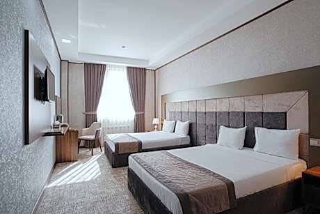 Located in Baku, within 1.6 miles of Baku Olympic Stadium and 2.2 miles of Koroglu Metro Station, Volga Hotel Baku has accommodations with a bar and free WiFi as well as free private parking for guests who drive. This 5-star hotel offers room service and a 24-hour front desk. The hotel provides city views and a sun terrace. The hotel will provide guests with air-conditioned rooms with a closet, an electric tea pot, a fridge, a safety deposit box, a flat-screen TV and a private bathroom with a shower. A buffet, continental or halal breakfast is served at the property. At Volga Hotel Baku you'll find a restaurant serving Middle Eastern, Pizza and Seafood cuisine. Vegetarian, halal and gluten-free options can also be requested. Heydar Aliyev Cultural Center is 2.9 miles from the accommodation, while Baku Railway Station is 4.9 miles away. Heydar Aliyev Airport is 11 miles from the property, and the property offers a paid airport shuttle service.