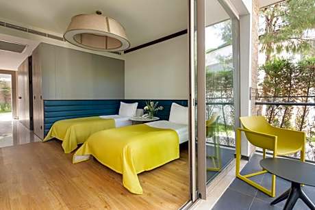 The spacious double room features air conditioning, soundproof walls, a balcony with garden views as well as a private bathroom boasting a walk-in shower. The unit has 2 beds.