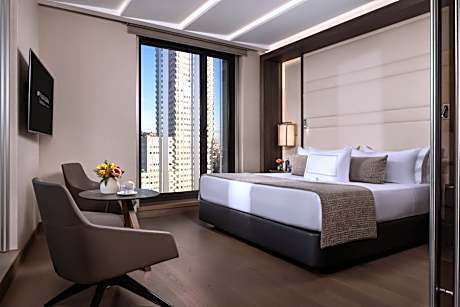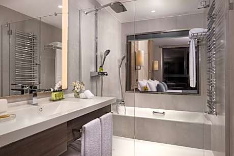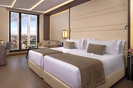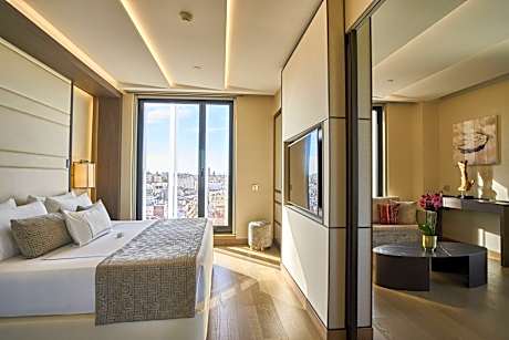 The VP Plaza España Design 5-star hotel is located near Gran Vía, right in the heart of Madrid, offering parking and a wellness center. All rooms feature exclusive décor and are equipped with a flat-screen TV with satellite channels, free WiFi, a desk with a coffee maker, and a private bathroom that includes a shower, bathtub, premium toiletries, and a bathrobe. Some rooms also have a private terrace. The hotel offers an excellent breakfast buffet with a wide variety of options for all tastes. Highlights include the rooftop Ginkgo Restaurant & Sky Bar, with stunning panoramic views of Madrid and a carefully curated menu, as well as the Botania restaurant, specializing in quality Mediterranean cuisine.. The VP Plaza España Design features 4.6 ft² of meeting and conference rooms. In the surrounding area, less than a 2-minute walk away, you will find shops, bars, and access to the public transport network. The Plaza de España metro station is just a 1-minute walk from the hotel, while iconic landmarks such as the Royal Palace and Almudena Cathedral are 2297 feet away. The Príncipe Pío train station is also 2297 feet away, and the Adolfo Suárez Madrid-Barajas Airport is located 8.7 mi from the property. Access to the VP Biloba Spa is exclusively reserved for adults. Children aged 12 and over can enter when accompanied by an adult. The spa entrance fee is 10 EUR, although it is free when booking a suite, junior suite, junior suite with terrace, or presidential suite. Rooftop pool only available during the summer season.