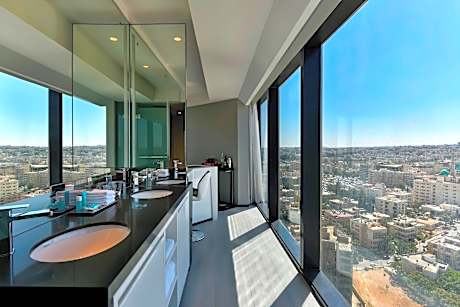 W Amman offers top-notch services and amenities, ensuring guests experience utmost comfort. Share your photos and respond to emails at your convenience, thanks to the free Wi-Fi internet access offered by hotel. Should you require transportation to or from the airport, hotel is able to organize it prior to your arrival date. Taxi and car hire offerings at the hotel simplify arranging your excursions, explorations, and additional activities in Amman.Visitors can take advantage of the accessible parking options directly at the hotel. Reception services such as concierge service, express check-in or check-out, luggage storage and safety deposit boxes are available to accommodate your requirements.Should you desire access to the top entertainment in the city, assistance can be provided by the hotel's tours.Traveling with minimal baggage is achievable at W Amman, as the hotel's dry cleaning service and laundry service ensures your garments stay fresh. Room amenities like 24-hour room service, room service and daily housekeeping contribute to making a perfect selection for your stay.Smoking is limited to specified smoking zones.Each accommodation at W Amman is thoughtfully created and adorned to provide visitors with a comfortable, home-like atmosphere.In certain rooms, the hotel offers linen service and air conditioning for guest convenience and satisfaction.In select rooms, guests at the hotel can enjoy top-notch in-room entertainment with television and cable TV available for their convenience. Rest assured, in a few chosen rooms, you will find the convenience of a coffee or tea maker and mini bar at your disposal.Understanding the significance of bathroom facilities in enhancing visitor contentment, hotel offers a hair dryer, toiletries and bathrobes within a few chosen chambers. Embark on your holiday experience in the most ideal manner. Commence each morning of your visit with an on-site breakfast. Experience the delight of a fresh morning by savoring excellent coffee at the cafe situated within hotel. Should you prefer not to venture out for a meal, the enticing culinary choices at hotel are always available for your satisfaction.No matter your specific dietary needs, rest assured that you will enjoy a delicious meal at W Amman, as they offer an array of kosher and halal choices. Experience an unforgettable evening with your fellow travelers just a short distance away, at hotel's bar. Throughout the day and evening, grab a bite to eat from hotel's self-service vending machines whenever you please. Throughout the day, engage in the entertaining activities available at W Amman. Unwind after a long day by stopping by massage, hot tub, steam room, spa and sauna to rejuvenate your senses.Each day at hotel, immerse yourself in the invigorating waters of the pool, perfect for a rejuvenating plunge or a series of revitalizing laps. Bypass the formal attire and choose a laid-back mixed drink or brew at hotel's waterside lounge.For individuals who don't want to skip their exercise routine, visiting the hotel fitness center ensures you maintain your vitality and wellness.