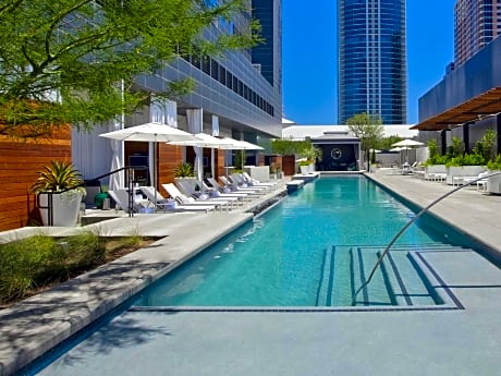 Centrally located in the heart of downtown Austin's 2nd Street District, this 4-star hotel features a full-service luxury spa and an elegant outdoor pool with a poolside bar and grill. Contemporary decor and stylish furnishings are displayed throughout the property. A flat-screen TV and Marshall bluetooth speakers are provided in each room at the W Austin. Showcasing a chic, modern style, each room offers a spacious bathroom and seating area. W Hotel Austin offers both an on-site business center with free WiFi and a fully-equipped fitness center. Guests may have the 24-hour concierge desk arrange activities and reservations. Hotel W Austin features a restaurant called Serenade, which serves locally-sourced, farm-to-table gourmet American cuisine. The Living Room, a modern lounge unique to W hotels, offers three separate bars with high-end cocktails and a hip,casual atmosphere. The Austin Convention Center and Texas State Capitol are a 10-minute walk from this Austin W hotel. The University of Texas at Austin, South Congress shopping district and Frank Erwin Center are each 5 minutes' drive away. The hotel just completed a full $40 million renovation of all rooms, outets and public space.