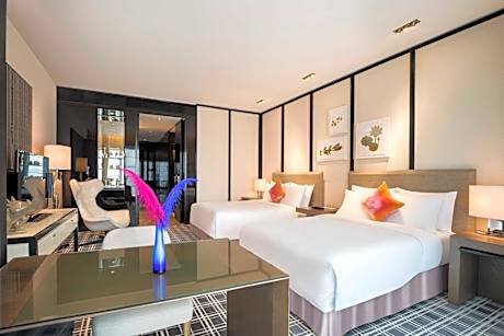 W Guangzhou offers top-notch services and amenities, ensuring guests experience utmost comfort. Share your photos and respond to emails at your convenience, thanks to the free Wi-Fi internet access offered by hotel.Should you require transportation to or from the airport, hotel is able to organize it prior to your arrival date.Taxi, car hire and shuttle offerings at the hotel simplify arranging your excursions, explorations, and additional activities in Guangzhou.Visitors can take advantage of complimentary parking directly at the hotel.Reception services such as concierge service, express check-in or check-out, luggage storage and safety deposit boxes are available to accommodate your requirements. Securing top-notch tickets and snagging sought-after dining reservations become effortless, thanks to the hotel's ticket service and tours.Traveling with minimal baggage is achievable at W Guangzhou, as the hotel's dry cleaning service and laundry service ensures your garments stay fresh. Room amenities like 24-hour room service, room service and daily housekeeping contribute to making a perfect selection for your stay. The hotel maintains a completely smoke-free zone, providing a breathable atmosphere. Smoking is limited to specified smoking zones. Each accommodation at W Guangzhou is thoughtfully created and adorned to provide visitors with a comfortable, home-like atmosphere.In select rooms of the hotel, guests can enjoy the advantage of having air conditioning available for their convenience.At W Guangzhou, the uniquely tailored rooms provide a configuration choice resembling a balcony or terrace.In select rooms, guests can enjoy a touch of amusement with the availability of cable TV for their entertainment.Rest assured, in a few chosen rooms, you will find the convenience of a refrigerator, a coffee or tea maker, instant tea and mini bar at your disposal. Understanding the significance of bathroom facilities in enhancing visitor contentment, hotel offers a hair dryer and bathrobes within a few chosen chambers. Embark on your holiday experience in the most ideal manner. Commence each morning of your visit with an on-site breakfast.Experience an unforgettable evening with your fellow travelers just a short distance away, at hotel's bar.