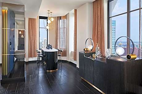 This 4-star hotel located in downtown Minneapolis is a 10-minute drive from the University of Minnesota. The upscale hotel will ignite your senses with 360-degree views from our 30th Floor Observation Deck.. W Minneapolis - The Foshay features spacious guest rooms. All rooms are equipped with a DVD player and an iPod docking station. The bathrooms include spa toiletries and bathrobes. Guests at the W Minneapolis - The Foshay can use the fully-equipped modern gym. Car transportation and concierge services are available. A large business center is also on site. Guests can dine at Manny’s, a gourmet steakhouse and seafood restaurant, for breakfast, lunch and dinner. The Prohibition bar is located on the 27th floor and features an observation deck with panoramic views and classic cocktails. Minneapolis Convention Center is a 10-mintue walk from the W Minneapolis - The Foshay. The Metrodome sports stadium is a 15-minute walk away.