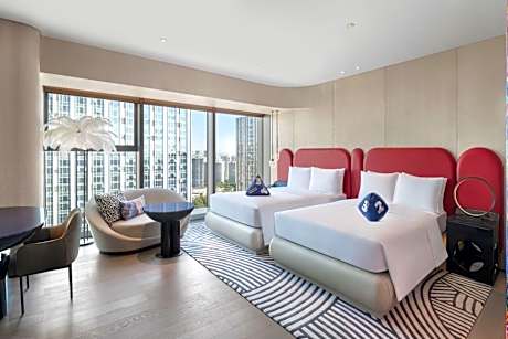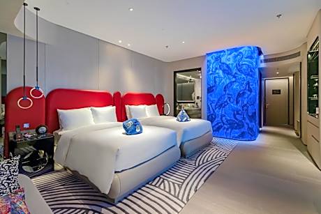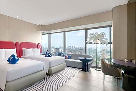 W Xiamen offers top-notch services and amenities, ensuring guests experience utmost comfort.Share your photos and respond to emails at your convenience, thanks to the free Wi-Fi internet access offered by hotel. Experience the wonders of Xiamen with ease by utilizing the services provided at car hire. Visitors can take advantage of the accessible parking options directly at the hotel.Reception services such as concierge service, luggage storage and safety deposit boxes are available to accommodate your requirements. Traveling with minimal luggage is achievable at W Xiamen due to the hotel's dry cleaning service ensuring your garments stay fresh. Room amenities like 24-hour room service, room service and daily housekeeping contribute to making a perfect selection for your stay.Minor items you neglected to bring won't cause major issues! Simply visit convenience stores to acquire what's necessary.Each accommodation at W Xiamen is thoughtfully created and adorned to provide visitors with a comfortable, home-like atmosphere.In certain rooms, the hotel offers linen service, blackout curtains and air conditioning for guest convenience and satisfaction. In select rooms, guests can enjoy a touch of amusement with the availability of television for their entertainment.Rest assured, in a few chosen rooms, you will find the convenience of a refrigerator, a coffee or tea maker, bottled water, instant tea and mini bar at your disposal. Understanding the significance of bathroom facilities in enhancing visitor contentment, hotel offers a hair dryer, toiletries, bathrobes and towels within a few chosen chambers. Embark on your holiday experience in the most ideal manner. Commence each morning of your visit with an on-site breakfast. Experience the delight of a fresh morning by savoring excellent coffee at the cafe situated within hotel.Experience an unforgettable evening with your fellow travelers just a short distance away, at hotel's bar.