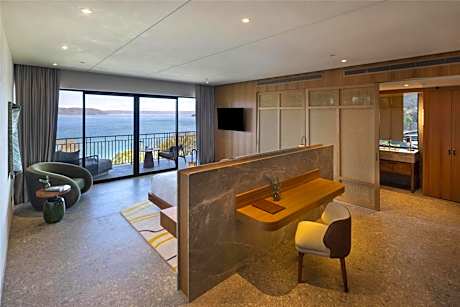 The air-conditioned suite offers a TV, a tea and coffee maker, a seating area, a safe deposit box as well as sea views. The unit offers 1 bed.