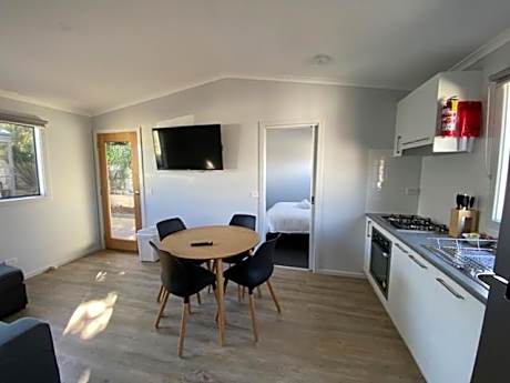 Warrnambool Holiday Village is located in a quiet peaceful area of Warrnambool city center. Each of these holiday cabins includes an LCD TV, full kitchen, air conditioning and free Wi-Fi. Located away from the noise on the street, Warrnambool Holiday Village is just 10 minutes’ drive from Logans Beach, the ideal location for whale watching between late May and early October each year. Facilities at Holiday Village Warrnambool include a shared kitchen, barbecue area and guest laundry facilities. Free on-site car parking is provided. Guests can enjoy use of an in-ground trampoline. There is a supermarket located directly across the road. Guests can prepare their own meals in the shared kitchen. There are shops and restaurants nearby in the town center.