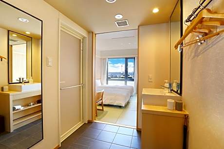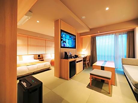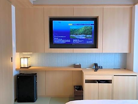 The twin room includes a private bathroom, well-fitted with a bath, a shower, a bidet, a hairdryer and slippers. The air-conditioned twin room features a flat-screen TV, tatami, soundproof walls, a safe deposit box as well as a quiet street view. The unit has 2 beds.