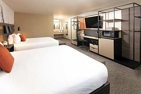 Waypoint Hotel is a boutique hotel, just off Highway 97 in Bend's Mid-Town. This hotel includes a spacious lobby featuring 8 local brews and ciders on tap, outdoor fire pits, and an on-site food truck serving comfort food. Whether traveling for work, pleasure, or a bit of both, our location is ideal to meet, retreat, and have some fun. Just around the corner from the Waypoint Hotel you'll find several brewpubs and a distillery. For those who enjoy a beautiful morning run, we are within a half-mile of Pioneer Park, which borders the Deschutes River. If you are prepared to venture a little further, you'll find that we are only minutes from the lakes, rivers, mountains and golf courses for which Bend is famous. There are over 100 restaurants located within walking distance of the hotel, including MidCity Smash Burger and Black Bear Diner.