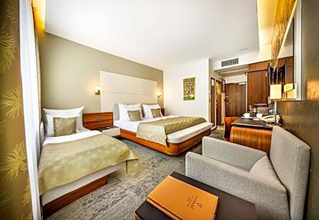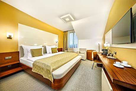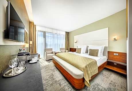 A 10-minute walk from Hluboka Castle, Wellness Hotel Diamant features an indoor pool, a fitness center and several spa facilities. It offers air-conditioned rooms with LCD TV and free internet access. Wellness Hotel Diamant is located in Hluboká nad Vltavou, a 2-hour drive from Prague Ruzyne Airport. Private parking is available on site for extra charge. Guest rooms are equipped with mini-bar, safe and a hairdryer. Each has a work desk and a private bathroom with bathrobe and in-room music. Guests can have a massage or relax in a Finnish sauna and a hot tub for an additional fee. The on-site restaurant serves a rich selection of international dishes. Guests can also enjoy golf course views from the terrace. The hotel's wellness center offers access to a swimming pool with a hot tub for an additional fee. The wellness center includes a sauna world, fitness and a wide range of massages and other procedures.