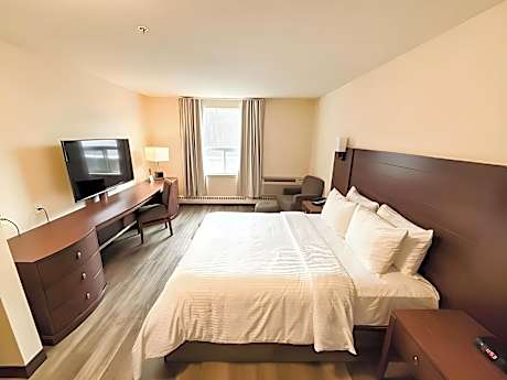This Edmonton hotel is across the street from the West Edmonton Mall and Galaxyland indoor amusement park. The hotel offers free on-site parking and guest rooms with coffee makers. West Edmonton Mall Inn features a fireplace in the lobby. A 24-hour front desk is also available. Wi-Fi access is provided throughout the property with surcharge. Guest rooms at the Inn West Edmonton Mall offers cable TV and air-conditioning. Clock radios and hair dryers are also included in each room.