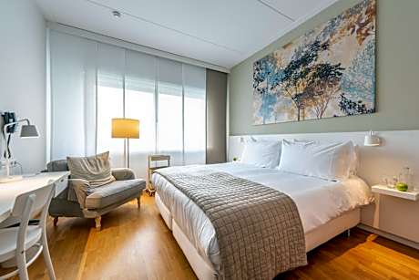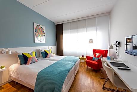 The environmentally conscious WestCord Hotel Delft, awarded with the Green Key certification, is located next to the A13 motorway. The accommodations is conveniently located between the city center and Delftse Hout. It offers free Wi-Fi and guests can make free use of the parking, a panorama sauna and fitness center. The hotel rooms have bright interiors. Each room has a private bathroom, a flat-screen TV and a fridge. They also include coffee and tea facilities. Guests can start the day with a buffet breakfast. The hotel also includes a tranquil courtyard terrace, a library and a lounge with a fireplace. A media corner is available in the lobby and there is a Jeu de Boules lane in the garden. The restaurant BLUE Dining offers Mediterranean cuisine and has an open show kitchen which offers a spectacular background to your meal. Taste a small snack or a full 3-course dinner. WestCord Hotel Delft is located 1.6 mi from Vermeer Center and provides easy access to Rotterdam and the Hague. The city center of Delft has shopping areas, old monuments and charming canals. The Royal Delft Museum is less than 10 minutes' drive away. Guests benefit from a Shuttle service, which will stop at several places in Delft for a surcharge.
