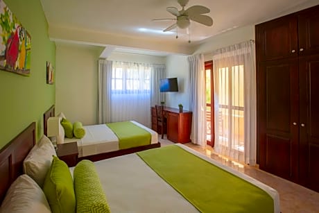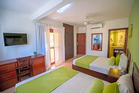The double room is fully equipped with 1 double bed, TV, air conditioning, bathroom with shower and with hairdryer. It has a safety box, fridge a fan and some of them have balcony (upon request).