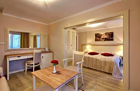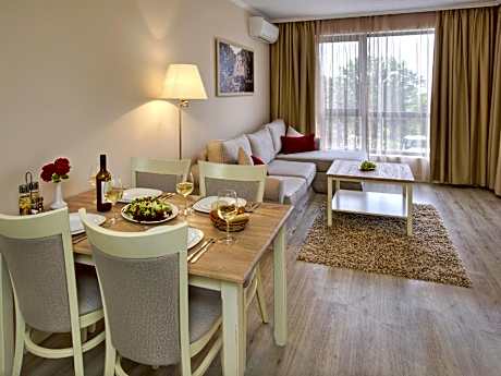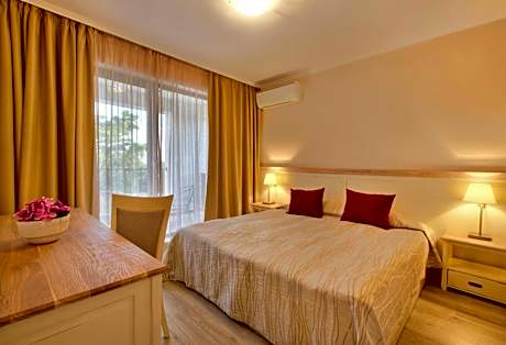This property is 15 minutes walk from the beach. Set a 5-minute walk from the UNESCO protected Botanical Garden, the Palace and the beach in Balchik, White Rock Castle offers air-conditioned accommodations with free WiFi and private parking on site. A seasonal outdoor pool and a fitness center are provided for free. The modernly furnished rooms and apartments all feature a flat-screen TV with cable channels, a mini fridge and a safety deposit box. The bathroom comes with floor heating and is equipped with a bath or shower and free toiletries. A hairdryer is available as well. Bathrobe are provided in the suites. A well-equipped kitchenette with a dining area and a living room with a sofa are featured in some of the units. Some of the rooms and the apartments have a balcony, some opening to sea views. An à-la-carte restaurant and a pool bar are provided. Other facilities, offered at the White Rock Castle include a children's room. A grocery shop and an alternative restaurant are set 328 feet from the property. Black Sea Rama Golf is located 2.3 mi away from the White Rock. Varna Airport can be reached in 29 mi. Airport shuttle services are offered upon request and at a surcharge. Dear Guests, White Rock Castle is a pet-friendly hotel. We welcome guests traveling with pets with a maximum weight of 10kg or less. Please note that pets will incur an additional charge of BGN 30 per night, per a pet.