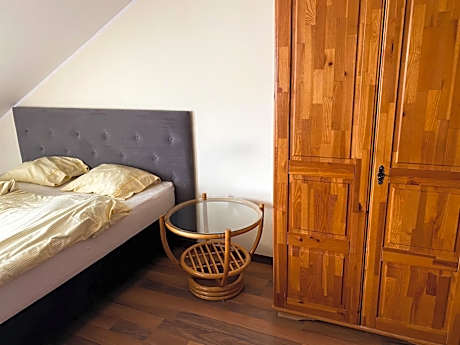 Just a 16-minute walk from Leba Railway Station and 600 yards from John Paul II Park, Willa Karolinka features accommodations in Łeba, with a garden and barbecue facilities. This bed and breakfast provides free private parking and a shared kitchen. The accommodation features luggage storage space and private check-in and check-out for guests. At the bed and breakfast, each unit includes a desk and a flat-screen TV. All rooms are fitted with a kettle, a private bathroom, and free Wifi, while selected rooms have a balcony and some have garden views. At the bed and breakfast, all units are fitted with bed linen and towels. For guests with children, the bed and breakfast offers a children's playground. Guests can also warm up near the outdoor fireplace after a day of hiking. Popular points of interest near Willa Karolinka include Łeba Park, Illuzeum Interactive Exhibition, and Sports Hall. Gdańsk Lech Wałęsa Airport is 55 miles away.