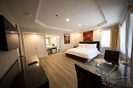 This Los Angeles hotel is less than 5 minutes away from Beverly Hills and 8 miles from Universal Studios. It serves a daily continental breakfast and offers a 24-hour reception. Offering a free Wi-Fi, each room at Wilshire Crest Hotel provides a flat-screen cable TV. Guest rooms include a seating area, a small refrigerator and a coffee machine. Styled in dark wood furnishings, the spacious guest rooms are furnished in white linens. Pastries, bagels, coffee and tea are just some of the breakfast items provided daily Hotel Wilshire Crest. Vending machines featuring drinks are located on site. A business center with fax and photocopying services is available to guests of Wilshire Crest. The University of California Los Angeles is 6 miles away from this hotel. Los Angeles International Airport is 25 miles away.