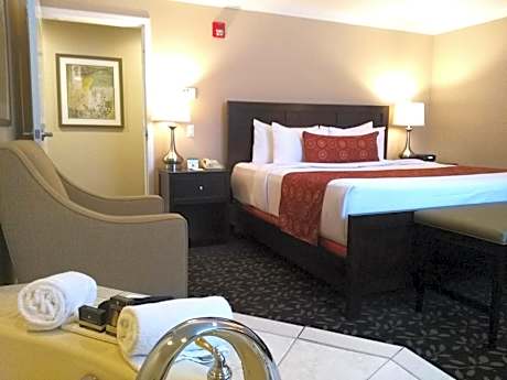 This elegant West Orange hotel is 20 miles from New York City. It has an on-site restaurant, a 24-hour convenience shop, and offers a free local shuttle service. Rooms at the Wilshire Grand Hotel have iPod docking stations, free Wi-Fi, and cable TV with HBO. Bath and Body Works bathroom amenities are provided. The Wilshire Grand Hotel has an outdoor sun terrace with a 7-foot putting green. There is a business center and a fitness center. Bike rentals are available. A buffet breakfast is served every morning at the Wilshire Grand. Primavera Restaurant and Bar is an on-site Italian restaurant that serves dinner every day and lunch on weekdays. Verona Park is less than a mile away and within walking distance of the Wilshire Grand Hotel. Montclair State University is 6 miles away.