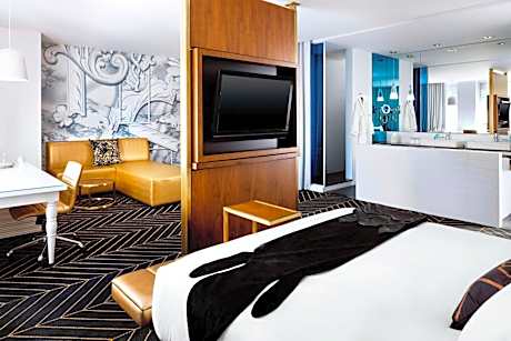 The modern W Montreal is located in the city center's historic Banque du Canada building. Located on Square Victoria, this property is just minutes from Old Montreal and the Quartier des Spectacles. Begin the day at the pet-friendly Montreal W with a workout in the state-of-the-art fitness center. Take advantage of the hotel's personalized Whatever/Whenever service. Guests can enjoy a cocktail at one of the several on-site lounges, a Quebec-style gin lounge featuring artisanal flavors located in the lobby, or try the restaurant called Tbsp. Guest rooms are furnished with goose-down duvets and flat-screen TVs. Easily discover all of the city center's most popular sites, including Noter Dame Basilica and the World Trade Center when staying at W Montreal. The Montreal Casino, the shops and restaurants of St. Catherine Street and the Eaton Center are also easily accessible. Terrasse W Montréal is a lively social scene in Victoria Square. Surrounded by lush greenery, go on a cocktail journey curated by 10 mixologists from 10 iconic W destinations around the world.From Melbourne to London, via Aspen, Colorado, set off on a cocktail escapade featuring 10 summer cocktails from 10 W destinations around the world. An original concept to try out this summer at Terrasse W MTL. Work at your own beat. Here’s a vibrant coworking space for travelers and Montrealers alike, with magnetic playlists to amplify your ideas. Our Living Room is designed by the most brilliant minds to foster focus and creativity during the workday, and spark serendipity and play at night. As you emerge from deep work, the barista winks at you. The beat picks up, cueing the mixologist to come on. The mocktail/cocktail culture sets in with its acidic, bitter, sweet and salty flavors to meet your mood as the Living Room fills up, and the retox cycle starts again. The fresh sound of a Living Room series live music performance catches your ear, while a little something else catches your eye. The space is yours, live it up.''