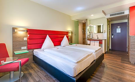 This 4-star hotel is near a lake in a beautiful green park, a 10-minute walk from Nuremberg Main Station. It offers modern rooms, a small gym and an underground car park. All rooms at the Novina Hotel Wöhrdersee Nürnberg City were newly remodeled in 2016 and feature air conditioning, a free mini-bar, Wi-Fi and a flat-screen TV with satellite channels. All bathrooms have a rain shower. The Hotel's restaurant serves regional Franconian specialties and international dishes. The Novina Hotel Wöhrdersee Nürnberg City is steps from Dürrenhof S-Bahn (city train) station. The NürnbergMesse exhibition center and Nuremberg Airport are easily reached by public transport. The hotel has a fitness area, and a jogging path runs directly past the hotel. Guests also enjoy free use of an internet computer in the lobby.