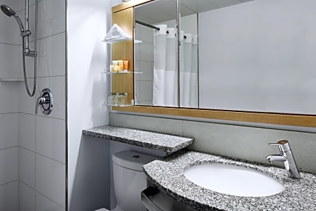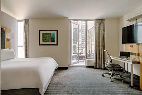 This New York City hotel is opposite of Memorial Plaza and within 2133 feet of Battery Park. The hotel offers modern rooms with free WiFi and flat-screen LCD TVs. Each of the rooms at the New York World Center Hotel is decorated in neutral tones and includes a desk. Guests can charge and listen to their iPod on the iPod docking station or adjust the room temperature with the bedside touch screen monitor. A fitness center and a 24-hour concierge staff are available at the World Center Hotel. Free bottled water stations are also located on each floor. The hotel’s indoor/outdoor rooftop restaurant, View of the World Terrace Club, is located on the 20th floor and serves contemporary American cuisine. The Club Living Rooms offers free refreshments. The World Center Hotel is within 0.6 mi of the Staten Island Ferry station and the Financial District. The Cortlandt Street Subway Station is 1066 feet away.