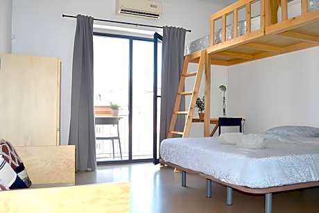 This bed in dormitory has a balcony and air conditioning.