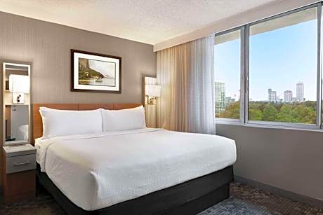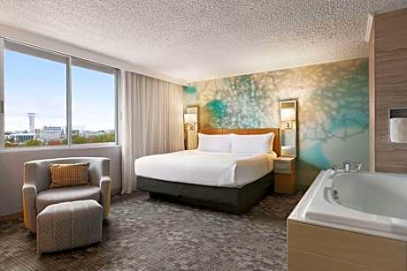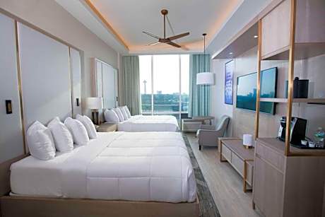 Wyndham Garden at Niagara Falls offers modern guestrooms equipped with essential amenities such as USB charging ports, microwaves, and refrigerators. Guests staying on the Sky Floor can enjoy stunning views of the city or the Canadian skyline from the diamond sky suites and premium guestrooms.